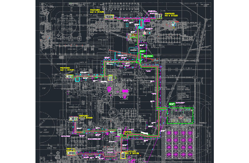 Scope of Work: BOP P&IDs (Plant Steam, Cooling Water, DM Water), Procurement specifications of Pumps, Valves, PRDS, strainers, steam traps, silencer etc., 3D Modelling, Piping design & detail engineering, Stress analysis, Pipe rack structure design & detail engineering.