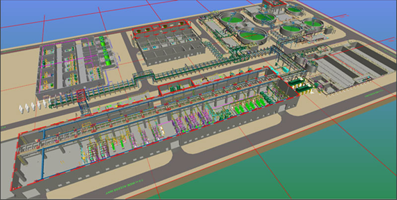 3D Modelling of HRSCC Area, RO Building, Chemical Building, Silo Building, Centrifuge Building, RW Tank Area, Reject Area, OWS & BOP Piping.